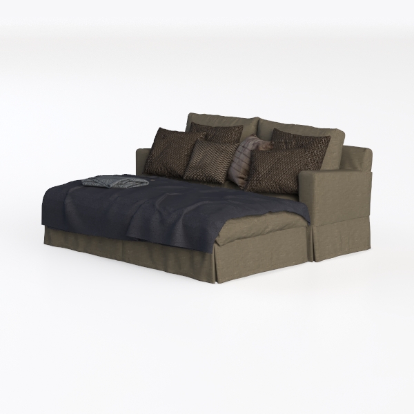 Designed to blend natural simplicity with tactile depth, this sofa features soft, textured upholstery in warm taupe, complemented by varied-patterned cushions and a draped navy throw. Its neutral palette and layered textures create a cozy yet sophisticated look, ideal for a modern minimalist living room with wooden accents and metallic details. The generous seat depth ensures optimal comfort, making it perfect for both relaxation and casual gatherings.