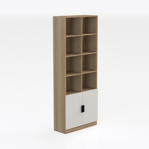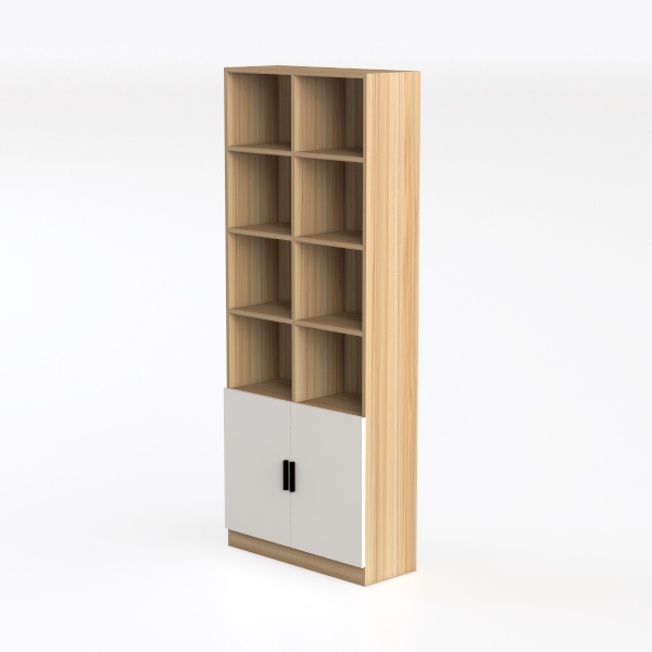 Inspired by minimalist design and functional needs, this bookshelf blends warm wood grain textures and smooth white cabinet doors for a clean, fresh look. Open shelves display books and decor, while the closed cabinet offers hidden storage, balancing display and concealment. Ideal for modern minimalist living rooms or study areas, pairing well with sleek coffee tables and metal desk lamps.