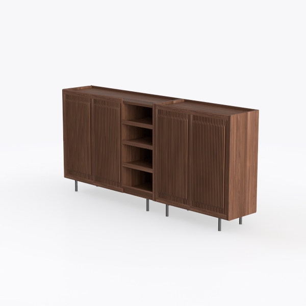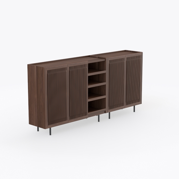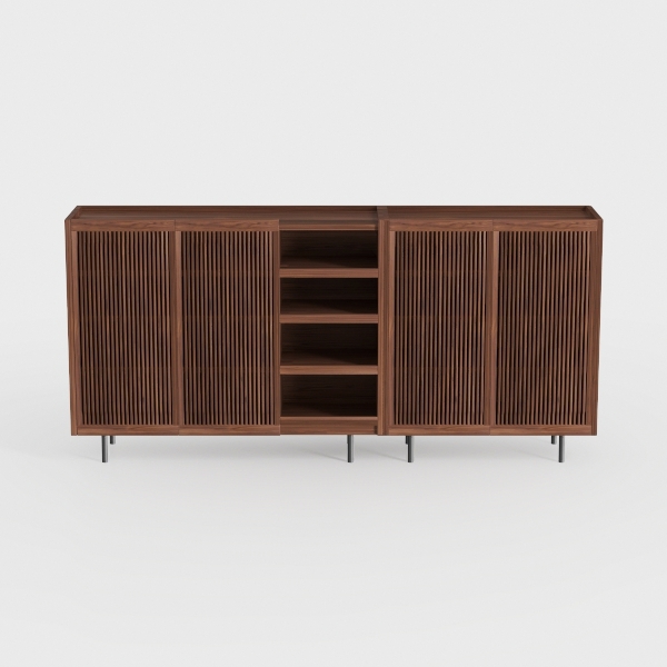 COSTWAY Rattan Storage Cabinet, Sideboard Buffet Cabinet w/ 3-Position Adjustable Shelf, Metal Legs, Accent Cabinet, Buffet Table for Hallway, Entryway, Living Room (1, Walnut)