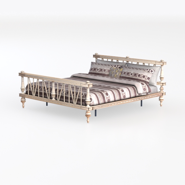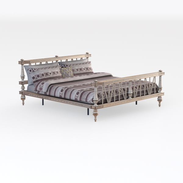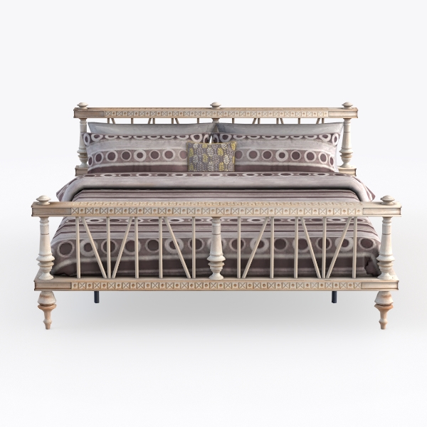 This bed blends classic craftsmanship with modern simplicity, boasting light, weathered wood and delicate carved details. Soft, patterned bedding adds warmth, while the sturdy frame ensures stability. Ideal for a cozy, timeless bedroom, it pairs seamlessly with neutral walls and soft throw pillows, promising a restful night’s sleep.