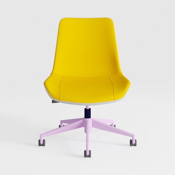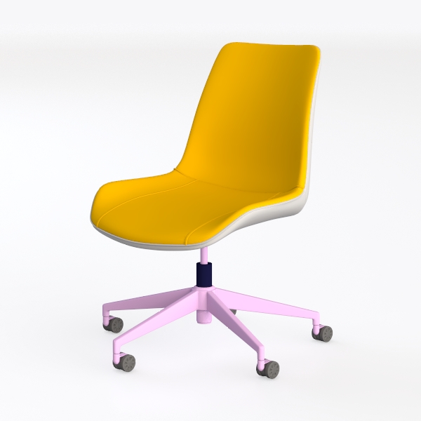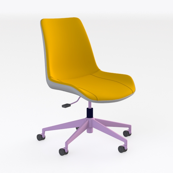 Inspired by vibrant, youthful design, this chair blends smooth, vibrant yellow upholstery with a soft pink base, creating a fresh, energetic look. The sleek, curved back and seat offer a comfortable, tactile feel, while the neutral background highlights its lively color palette. Perfect for modern workspaces or cozy living corners, it pairs beautifully with minimalist desks and pastel accessories. Swivel function and smooth-rolling casters ensure easy movement, making it both stylish and practical for daily use.