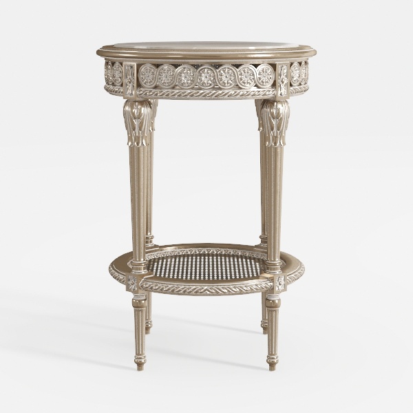 Inspired by classical European craftsmanship, this side table merges timeless elegance with subtle charm. Its polished metallic frame features intricate carvings, while the smooth marble top exudes luxury. The woven lower shelf offers practical storage, perfect for a vintage or modern-luxury living room, pairing beautifully with velvet sofas and crystal lamps.
