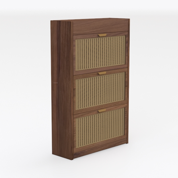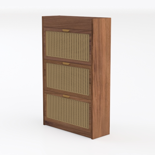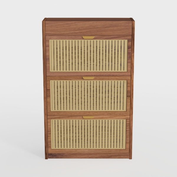 Inspired by coastal craftsmanship, this cabinet blends warm natural wood grain with light, airy woven panels. The rich, tactile wood contrasts beautifully with the light, airy open-weave texture, while gold handles add subtle elegance. Perfect for minimalist living rooms or cozy bohemian spaces, it pairs effortlessly with linen sofas and potted greenery. Three deep drawers offer ample storage, with smooth closures ensuring easy daily access.