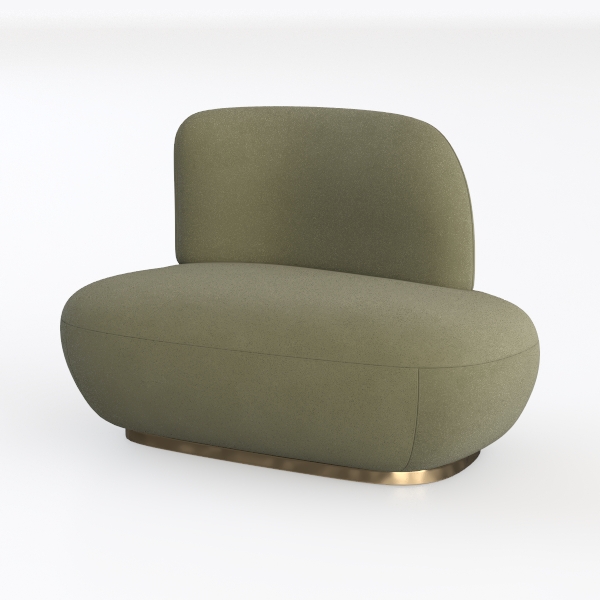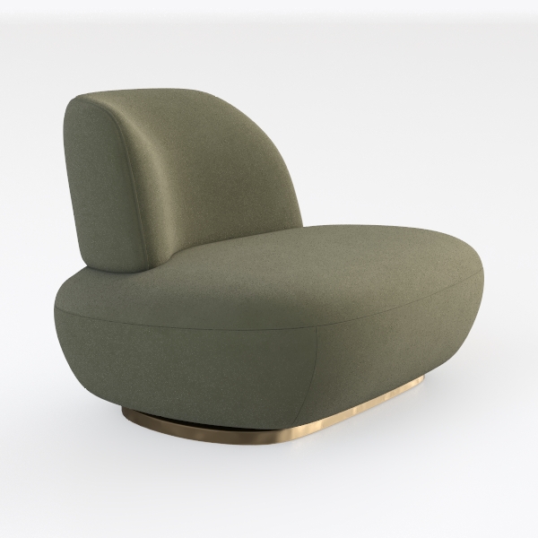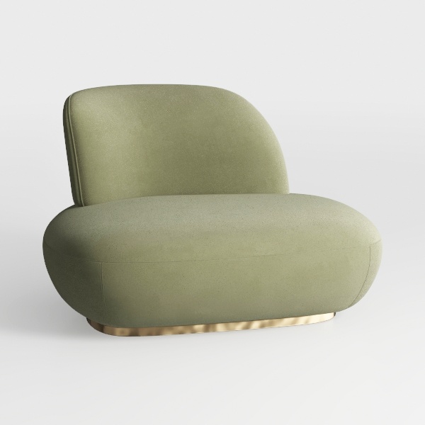 Inspired by organic forms, this armchair blends soft curves with a minimalist vibe. Its textured, sage-green upholstery feels plush to the touch, while the smooth gold base adds a warm, luxurious contrast. Perfect for a modern-luxe living room, it pairs beautifully with marble coffee tables and brass floor lamps. A generous seat depth and low back cradle you in comfort, making it ideal for lazy afternoons or casual gatherings.