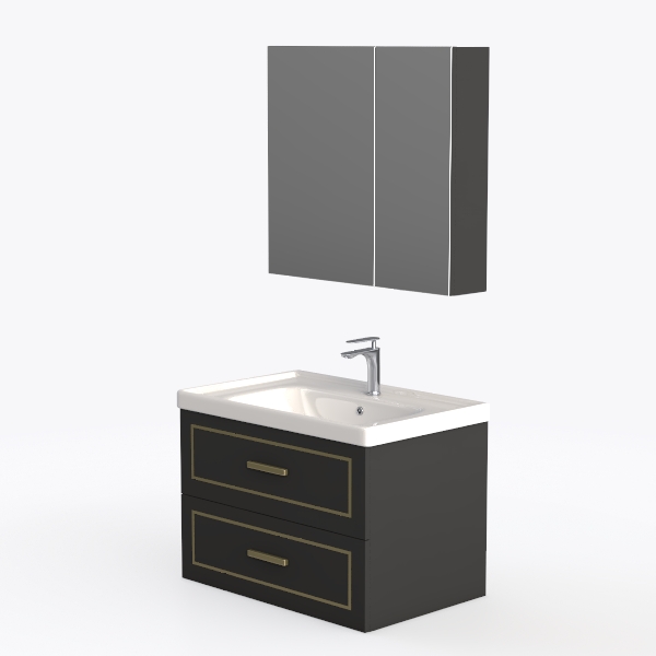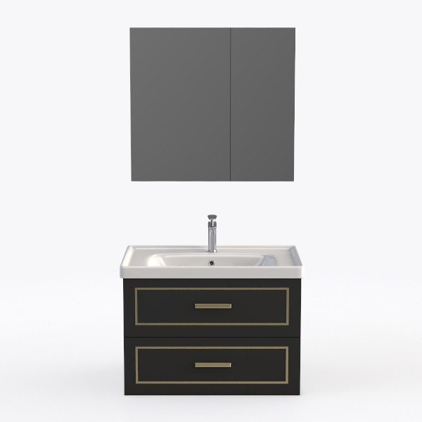 36" Floating Bathroom Vanity Set, Modern Wall-Mounted Vanity Ceramic Bathroom Cabinet with Sink, Black