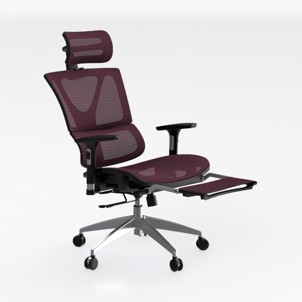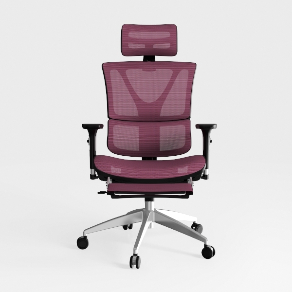 Inspired by ergonomic design, this office chair blends minimalist aesthetics with functional comfort. Crafted from breathable mesh in a rich burgundy hue, it offers a light yet supportive feel, with sleek lines and an open structure creating a modern, uncluttered look. Perfect for a minimalist home office or workspace, it pairs well with wooden desks and metallic desk lamps. Equipped with an adjustable headrest, lumbar support, and smooth-rolling casters, it ensures all-day comfort during work.