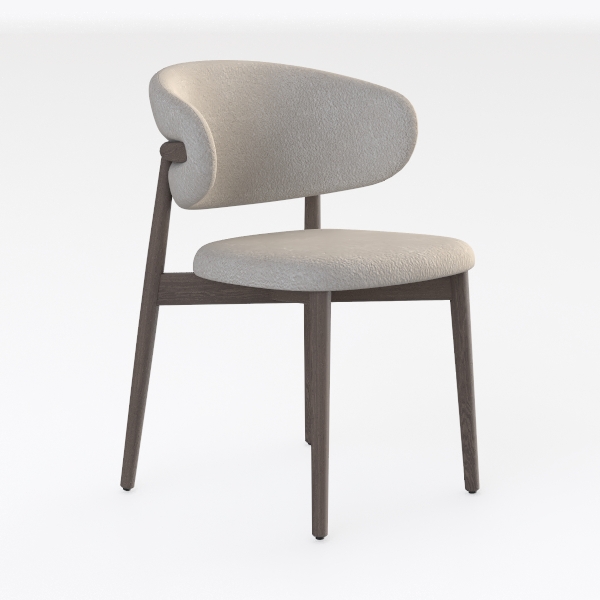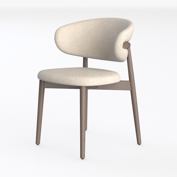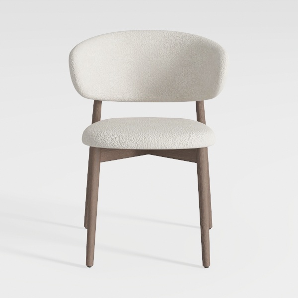 Inspired by organic curves and minimalist Scandinavian design, this chair blends softness with structural elegance. Its textured bouclé seat and backrest feel plush and warm, while the light hue adds an airy, calming vibe. Ideal for modern dining rooms or cozy living nooks, it pairs beautifully with marble tables and wooden accents. The contoured shape and sturdy oak legs ensure comfort and stability, making it a versatile space addition.