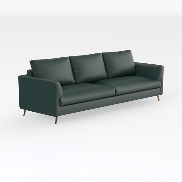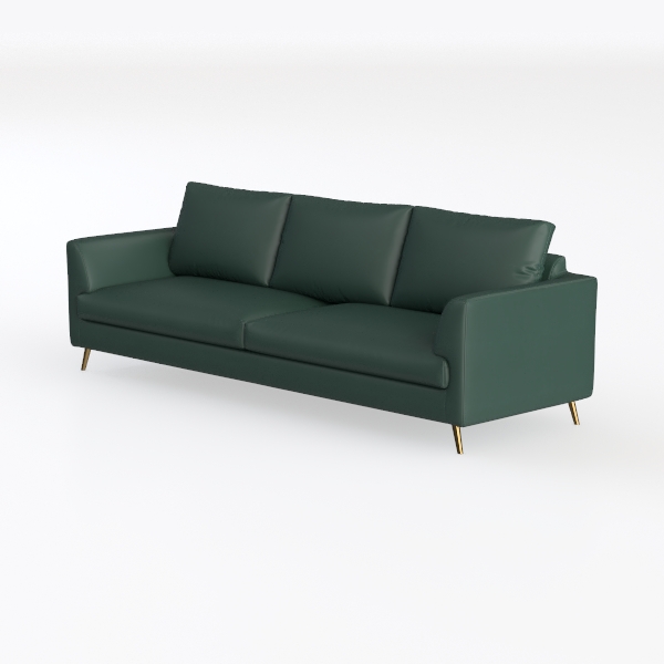 Visually, it commands attention with its streamlined silhouette: three generously sized cushions that curve gently, framed by slightly angled armrests, and elevated on slender, gold-tone metal legs that lend a light, airy feel. The color, a rich emerald, pairs effortlessly with both warm wood accents and cool neutral backdrops, making it a versatile centerpiece for spaces ranging from modern轻奢 (contemporary luxury) to Scandi-inspired minimalism.