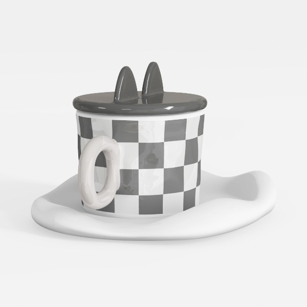 Inspired by classic checkerboard patterns and playful animal-like ear lids, this ceramic container features a sleek, high-contrast black-and-white grid design. Its smooth, glossy surface adds a fun, modern touch, ideal for a pop-art or minimalist kitchen. The curved white handle ensures easy grip, with a matching white tray keeping surfaces clean, perfect for pairing with wooden utensils and metallic accents.