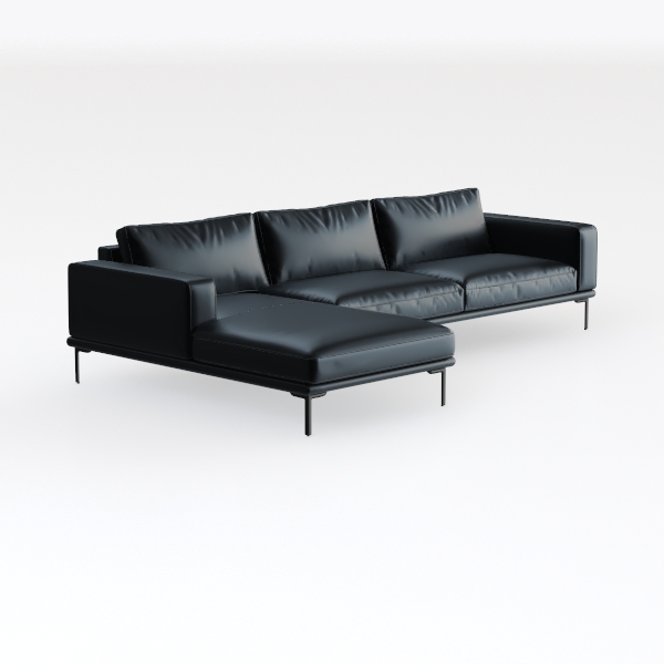 Designed with Scandinavian minimalism at its core, this sofa embodies clean lines and uncluttered elegance. Crafted from smooth, high-quality leather, its surface feels cool yet inviting, with a subtle sheen that plays beautifully with light. Sharp, angular arms contrast gently with the soft curves of the backrest, while slender black metal legs elevate the piece, creating an airy, weightless presence. It’s the ideal centerpiece for a modern minimalist living room—pair it with a marble coffee table, geometric-patterned rug, and sculptural floor lamp to enhance its sophisticated vibe. The generous seat depth ensures exceptional comfort, while the integrated ottoman offers versatility: use it as extra seating during gatherings or as a footrest for unwinding. Its timeless black hue seamlessly blends with bold artworks or neutral decor, making it a versatile addition to any contemporary home.