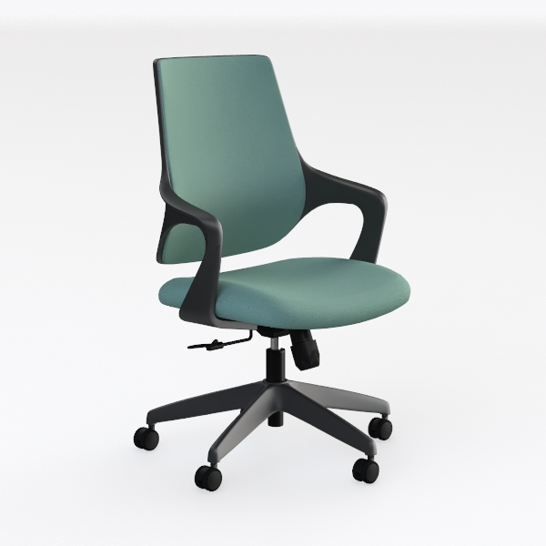 Crafted with organic minimalism in mind, this chair blends soft sage upholstery with sleek black armrests and base. The smooth, breathable fabric offers a tactile comfort, while the clean lines create a calm, airy aesthetic. Perfect for a modern home office or minimalist study, it pairs beautifully with oak desks and matte metal lamp bases. Adjustable height and swivel casters ensure ergonomic support, making long workdays feel effortless.