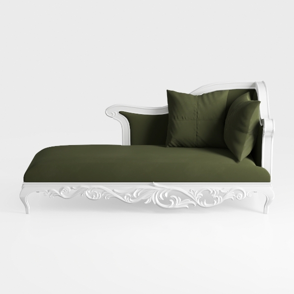 Crafted with a harmonious blend of classic elegance and modern comfort, this piece draws inspiration from 18th-century French Provincial design, reimagined with contemporary restraint. The frame, rendered in crisp white, features intricate scrollwork and curved armrests that evoke timeless craftsmanship, while the lush emerald upholstery—soft to the touch, with a velvety texture—adds a rich, inviting warmth. Visually, the striking contrast between the deep green and smooth white creates a focal point that balances ornate detail with understated sophistication, making it a perfect fit for both traditional and modern spaces.