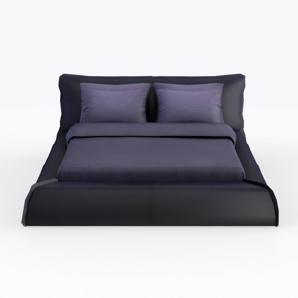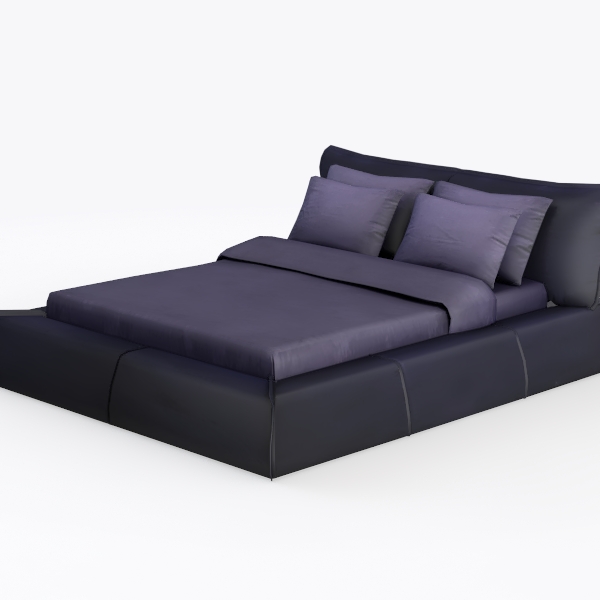 Inspired by the balance of softness and structure, this bed blends organic curves with sleek edges. Its deep purple fabric, smooth to the touch, contrasts beautifully with the matte black frame, creating a calm, sophisticated atmosphere. Ideal for a modern minimalist or contemporary bedroom, it pairs effortlessly with wooden nightstands and warm-toned rugs. A generously sized surface and padded headboard ensure both style and exceptional comfort for restful nights.