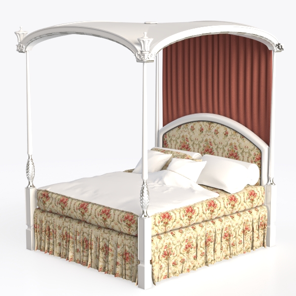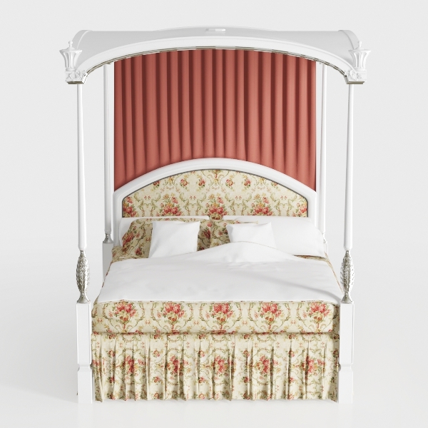 Inspired by timeless European classical design, this bed blends delicate floral-patterned upholstery on the headboard and footboard—soft to the touch—with a white-painted frame featuring intricate carvings, exuding elegance. Its romantic charm makes it perfect for French country or neo-classical bedrooms, complemented by lace curtains and wooden furniture, while the wide four-poster structure ensures a spacious, comfortable sleeping space.