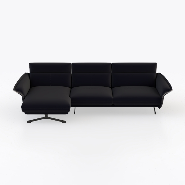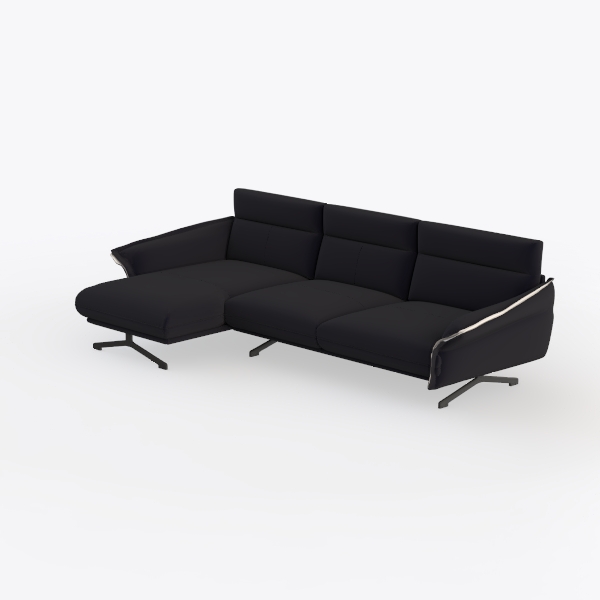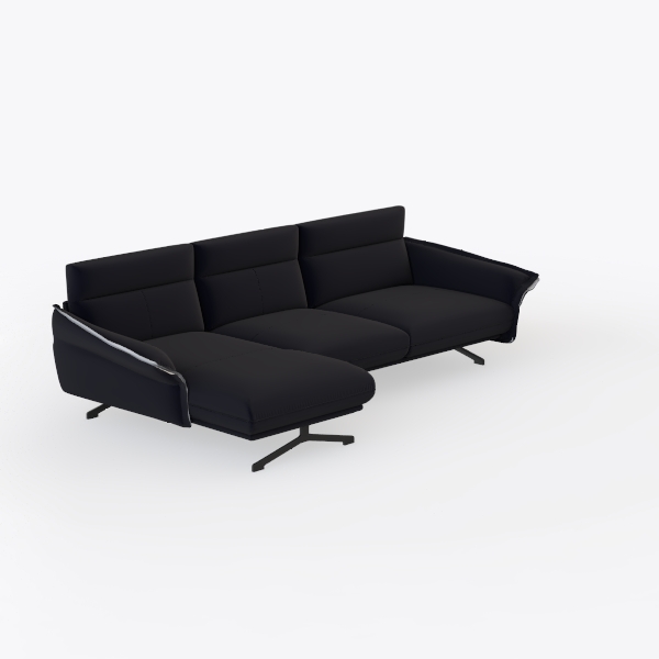 Valencia Andria Reclining Leather Sectional Sofa, 3 Seater Reclining Couch with Left Hand Chaise | Italian Nappa 11000 Top Grain Leather | Power Reclining Seat with Adjustable Headrests - Black