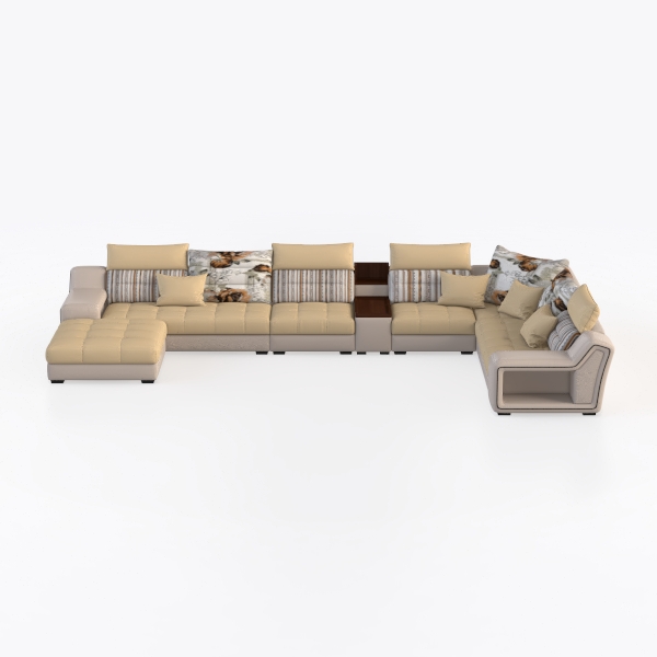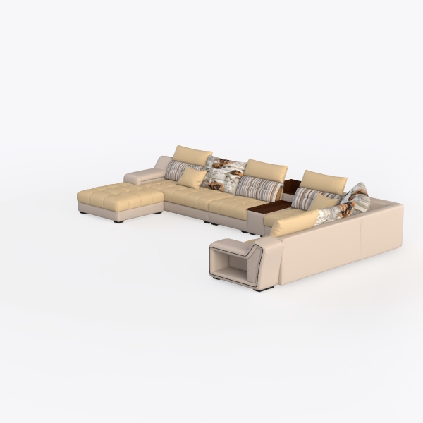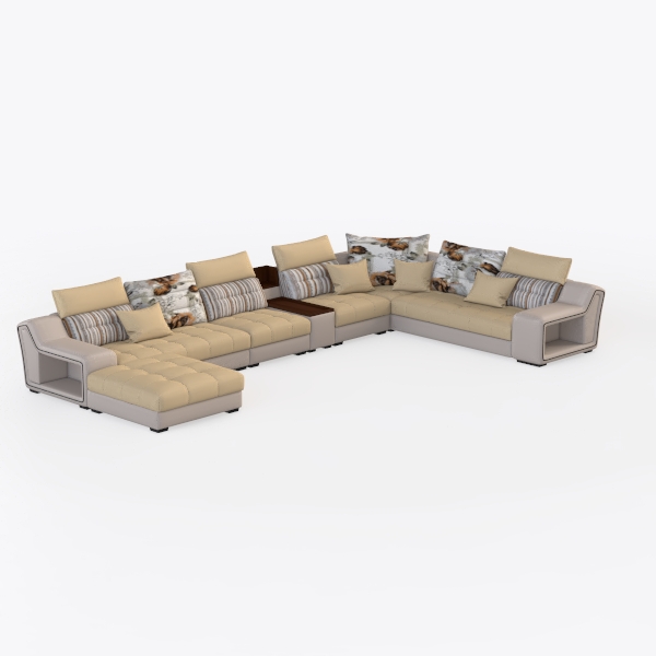 Inspired by the seamless blend of natural warmth and contemporary minimalism, this L-shaped sofa transforms living spaces into inviting retreats. Its light, neutral palette—soft beige and warm gray—creates an airy, calming atmosphere, while the plush, breathable upholstery feels velvety to the touch, promising comfort with every sit. Layered throw pillows, featuring subtle stripes and nature-inspired prints, add texture and visual depth, enhancing the sofa’s modern yet approachable charm.