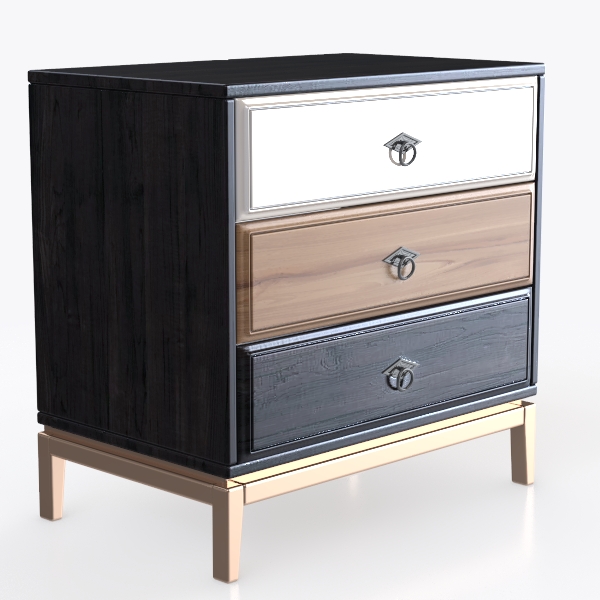 Inspired by mid-century modern design, this cabinet blends warm wood tones, sleek black frames, and gold legs, balancing vintage charm and contemporary elegance. Smooth white, light oak, and deep walnut drawers contrast—wood grains add natural warmth, while matte black borders and polished metal handles create textural depth. Perfect for modern-luxe or Scandinavian spaces, pair with marble side tables and brass lights, ideal for a bedroom or living room. Three drawers offer ample storage; metal ring pulls ensure easy access, and slim gold legs keep the piece light yet stable.