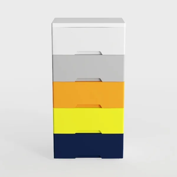 Inspired by bold color blocking from modern art, blending soft neutrals (white, gray) with vibrant hues (orange, yellow, navy), this multi-drawer cabinet features smooth, matte surfaces and clean lines, creating a fresh, dynamic look that becomes a focal point. Ideal for minimalist or Scandinavian living rooms, it pairs beautifully with wooden coffee tables and potted greenery, offering ample storage via spacious drawers with easy-grip handles to keep small items organized and adds playful color to the space.