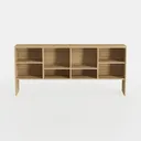 Designed to blend natural warmth with minimalist precision, this wooden shelving unit features smooth surfaces with subtle grain patterns, offering a tactile connection to nature. Its clean, straight lines create a calm visual rhythm, ideal for modern minimalist living rooms or home offices. Four divided compartments with double shelves provide ample space for organizing books, decor, or essentials, balancing functionality and aesthetic appeal.