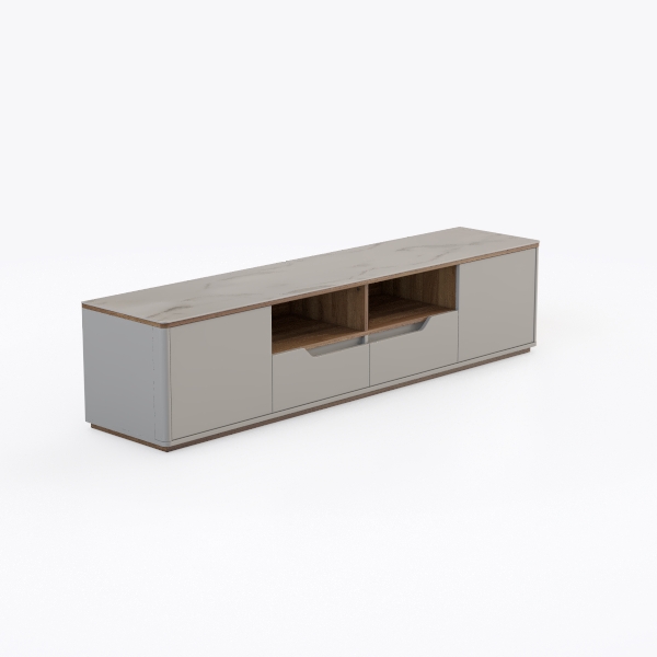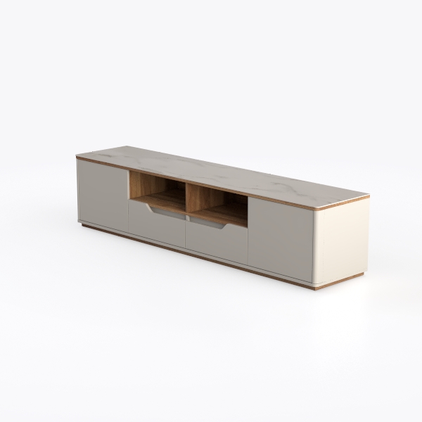 Functionality meets aesthetics here: two closed side compartments offer hidden storage for media devices, remotes, and cables, while the central open section easily accommodates a flat-screen TV or streaming gadgets. Smooth sliding doors glide silently, keeping the space clutter-free, and the sturdy build ensures durability, making it a practical yet sophisticated centerpiece for daily use.