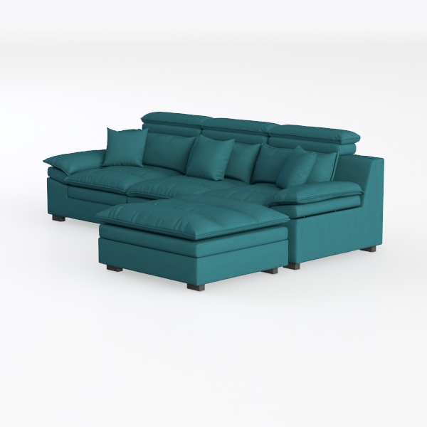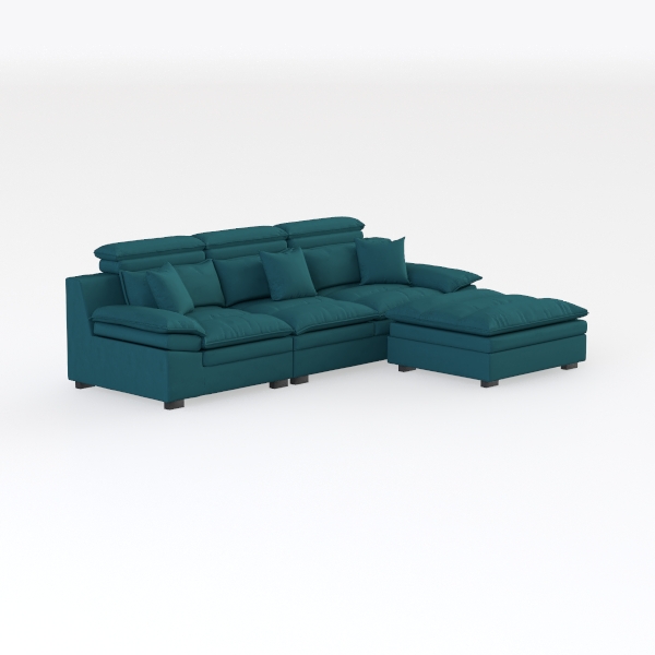 Introducing a stunning sectional sofa that harmoniously blends comfort with style, perfect for a contemporary living space. Inspired by modern aesthetics, this piece features a rich teal fabric that adds a vibrant touch to any room. The plush texture invites you to sink in and relax, while the carefully designed cushions provide ample support for lounging or entertaining guests.