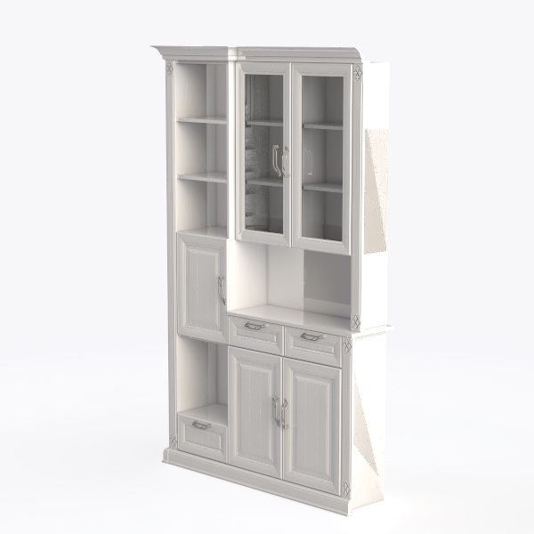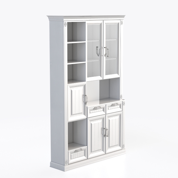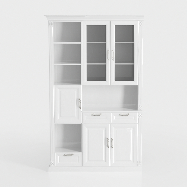 This elegant storage piece draws inspiration from the timeless charm of classic cabinetry, blending traditional grace with modern practicality. Crafted from high-quality materials, its smooth, matte white finish exudes a clean, airy aesthetic, while subtle carved details along the edges add delicate character without overwhelming simplicity. Clear glass doors frame the upper shelves, allowing for elegant display of cherished collectibles or decorative items, while the lower closed cabinets and deep drawers offer ample hidden storage. The sleek metallic handles, with their soft sheen, complement the crisp white surface, enhancing the piece’s refined allure.