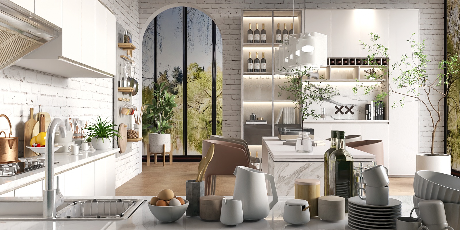 This piece embodies the essence of modern minimalism, drawing inspiration from the harmony of clean lines and natural textures. Its design balances functionality with understated elegance, rooted in the belief that furniture should both serve and inspire daily life. The tabletop, with its smooth, matte finish, contrasts beautifully with the cabinet beside it, which features striking marble-like veining—soft grays and whites that mimic natural stone, adding depth without overwhelming the space. The four chairs, with their curved, contoured backs and soft, upholstered seats in warm brown and muted gray, invite comfort, their lightweight frames and tapering legs enhancing the sense of airiness. Visually, the neutral color palette (whites, grays, and earthy tones) creates a serene backdrop, while the subtle texture variations add visual interest. This setup shines in modern, Scandinavian, or minimalist-inspired living or dining areas. Pair it with sleek metal accents, like a geometric floor lamp or a slim coffee table, and introduce potted greenery (such as the delicate branch in the small vase) to bring in organic warmth. Functionality is key here: the long table accommodates gatherings, while the integrated cabinet offers hidden storage for dining essentials or everyday items, ensuring the space stays clutter-free. Every element works in unison to create a cohesive, inviting environment that feels both contemporary and timeless.