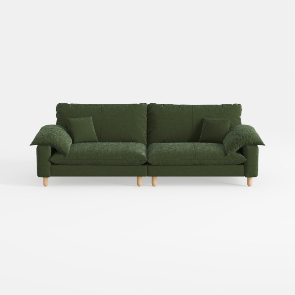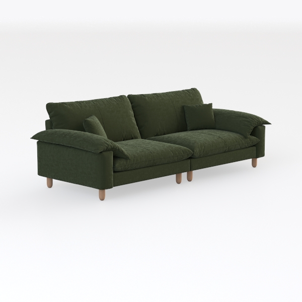 Inspired by the lush greenery of nature, this striking sofa exudes a sense of tranquility and connection to the outdoors. The rich green fabric invites touch, offering a velvety softness that provides both comfort and warmth. Its plush cushions and relaxed silhouette create an inviting atmosphere, perfect for unwinding after a long day.