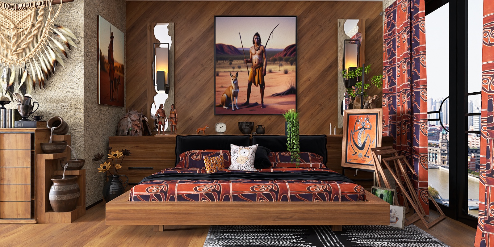Crafted to blend timeless charm with modern functionality, this wardrobe takes cues from the organic warmth of natural wood and the clean lines of mid-century design. Its rich, warm brown finish highlights distinct wood grain patterns that mimic the beauty of reclaimed timber, while the smooth, slightly matte surface invites gentle interaction, offering a tactile experience as comforting as it is sophisticated. The balanced arrangement—six roomy drawers and a side hanging section—creates a harmonious visual rhythm, with thin, dark handles adding subtle contrast to the soft wood tones, enhancing the overall sense of elegance.