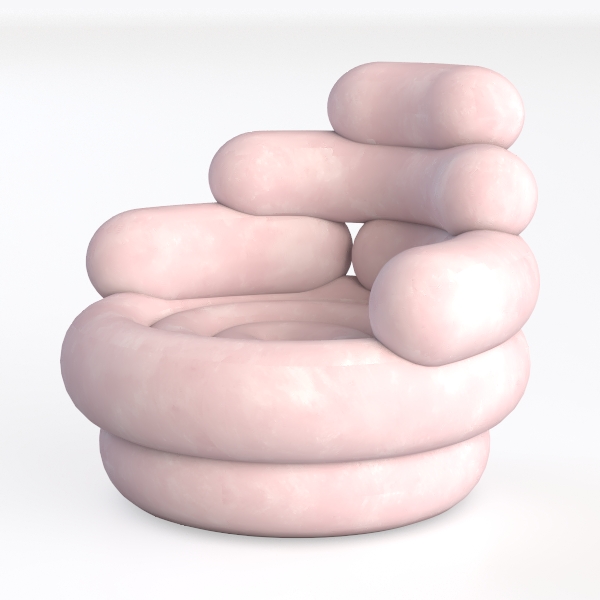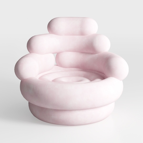Featuring a playful and organic design, this unique seating piece draws inspiration from soft, natural forms, creating an inviting atmosphere in any space. Its plush texture, reminiscent of a gentle embrace, invites you to sink in and relax. The pastel pink hue adds a touch of warmth and whimsy, making it perfect for a cozy living room or a creative workspace.