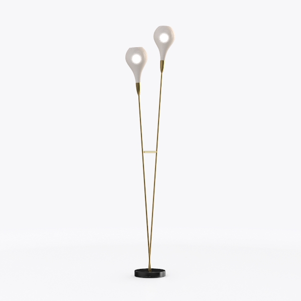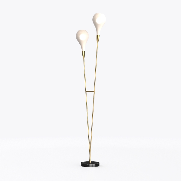 Brightech Sky Dome Double LED Floor lamp, Torchiere Super Bright Floor Lamp with 2 Reading Lamps for Living Rooms & Offices - Dimmable Tall Standing Lamp for Bedroom Reading - Tall Brass Pole