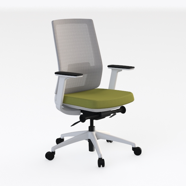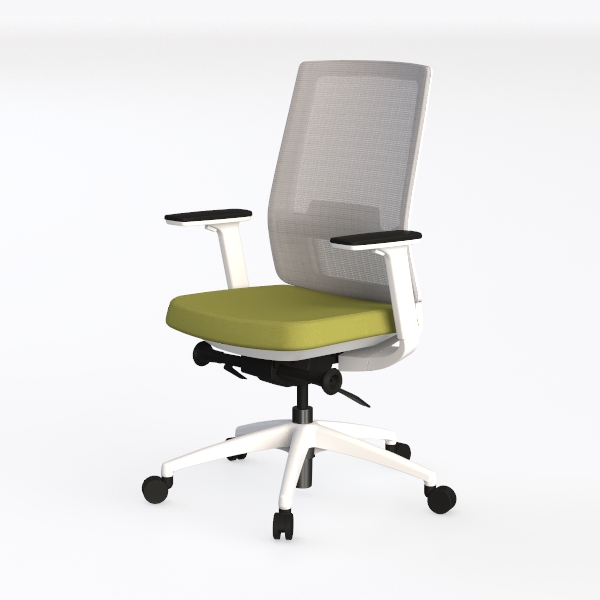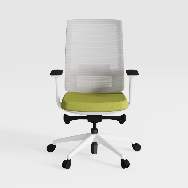 This ergonomic office chair embodies a blend of minimalist design and practical comfort, inspired by the need to create workspaces that balance focus and relaxation. Its aesthetic draws from the harmony of light and structure, with a lightweight mesh backrest that feels airy and supportive—allowing breathability while gently conforming to the body’s curves. The vibrant lime-green seat cushion, crafted from soft, high-resilience foam, offers plush comfort, inviting extended sitting sessions without strain. The crisp white frame, paired with matte black armrests and casters, adds a modern touch, keeping the overall look clean and uncluttered.