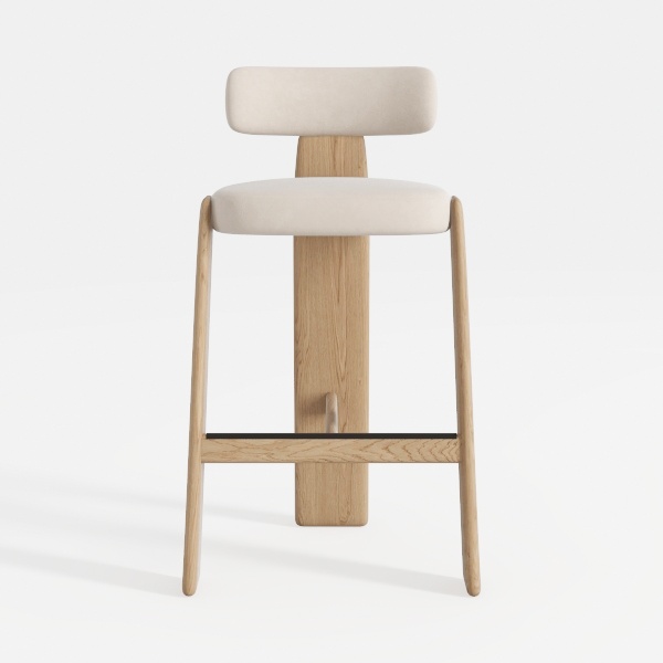 Visually, its slender, tapering legs and vertical central support exude lightness, while the neutral color palette—soft cream and warm oak—blends seamlessly into both modern and rustic settings, never overwhelming the room. It shines in a kitchen island, home bar, or breakfast nook: pair it with marble-topped surfaces for a touch of luxury, or raw wood counters for a cozy, earthy vibe. A few such stools flanking a sleek countertop transform the space into a social hub, where functionality meets understated elegance.