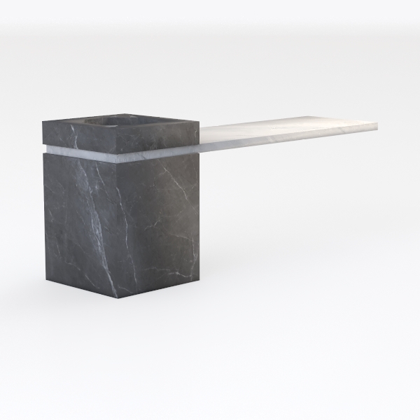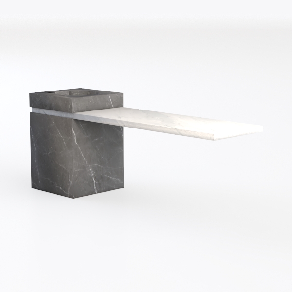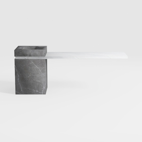 This piece draws inspiration from the timeless dialogue between contrasting natural stone textures, blending deep, veined gray marble with crisp, luminous white marble to create a striking visual balance. The gray base exudes understated elegance, its polished surface catching light to reveal intricate mineral patterns, while the extended white top offers a bright, airy contrast, its smooth, cool touch enhancing the tactile allure. Designed for modern spaces, it shines in minimalist living rooms or chic entryways, pairing effortlessly with neutral-toned sofas and metallic decor. The compact, geometric structure beneath the gray marble provides subtle storage, while the extended white surface offers generous space for both functional use—like a sculptural lamp or stack of books—and decorative elements, making it both practical and visually commanding.