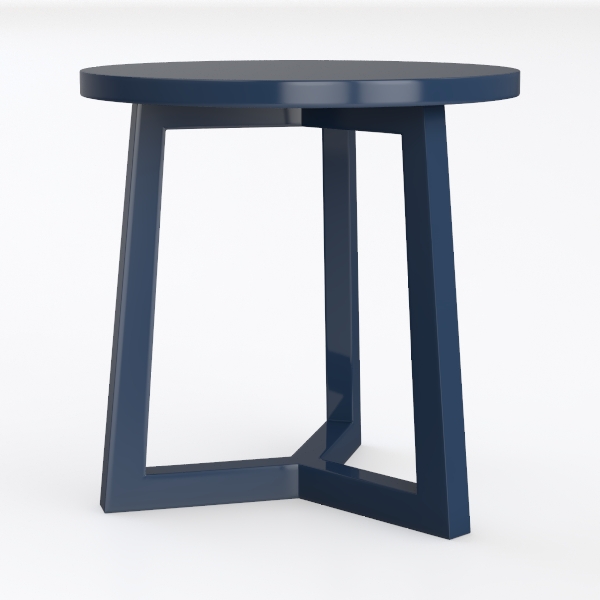 The deep, rich indigo surface has a smooth, slightly matte finish that feels cool to the touch, catching light subtly to reveal subtle depth without harsh glare. The curved edges soften the table’s silhouette, while the interlocking leg design—forming a stable, open X-shape—adds visual intrigue, making the piece feel light yet grounded. It avoids the bulk of traditional side tables, instead offering a compact presence that doesn’t dominate a room.
