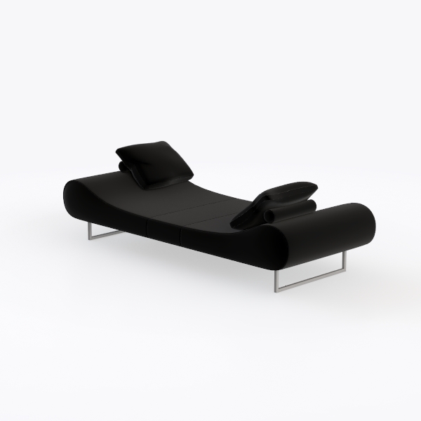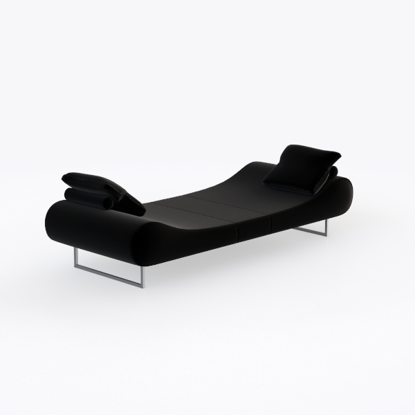 Introducing a striking piece that embodies modern elegance and artistry. This sleek chaise lounge is inspired by contemporary design aesthetics where form seamlessly merges with function. Its smooth, curvaceous silhouette invites a sense of relaxation, while the rich black upholstery exudes sophistication and versatility.