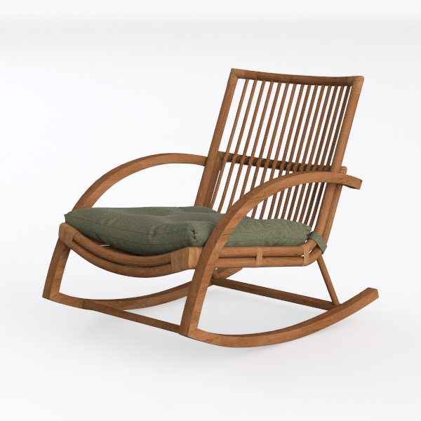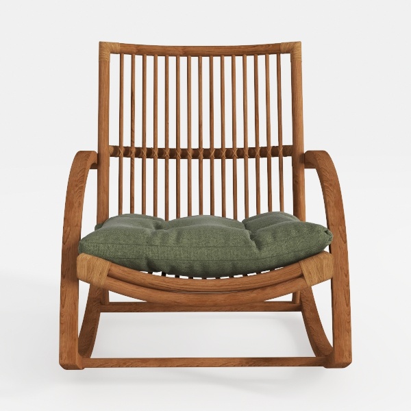 The seat is upholstered in a plush, sage-green cushion with a textured weave, offering a comforting contrast to the solid wood. Its generous depth and curved armrests cradle the body, providing deep, supportive relaxation, while the lightweight yet sturdy frame ensures easy movement and long-term durability.