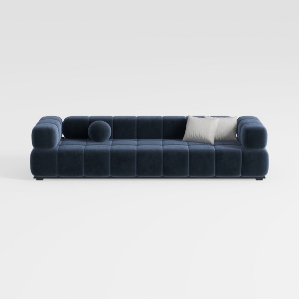 Inspired by contemporary minimalism, this striking sofa embodies a perfect blend of comfort and aesthetic appeal. The rich, deep navy upholstery offers a luxurious texture that invites you to sink in, while its sleek, blocky silhouette exudes modern sophistication. The subtle sheen of the fabric enhances its visual depth, creating a focal point in any living space.