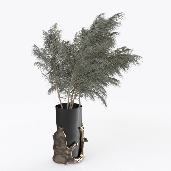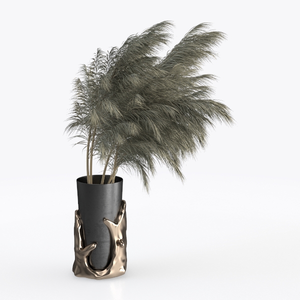 Ceramic Flower Vase, Large Matte Black, Ribbed, 10" Tall, Nordic Style, for Fresh Dried Flowers, Pampas Grass