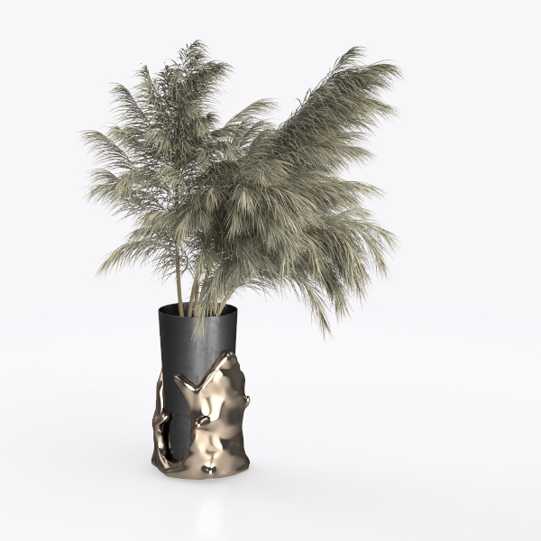 Ceramic Flower Vase, Large Matte Black, Ribbed,