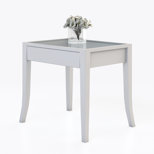 Inspired by the pursuit of balanced simplicity and functionality in living spaces, this side table blends sleek geometric lines with soft, flowing contours, creating a serene yet refined atmosphere. Its white legs feature a smooth, matte finish that feels warm and gentle to the touch, while the transparent glass top, with its rounded edges, offers a crisp, unobstructed surface—cool and smooth under the hand, it contrasts beautifully with the softness of white blooms in a clear vase above, adding a touch of natural lightness to the design. Perfect for modern minimalist, Scandinavian, or contemporary settings, it shines beside a plush sofa in a living room, paired with a marble coffee table and a slim metal floor lamp, or as a bedside companion in a bedroom, complementing wooden flooring and neutral-toned walls. Beyond its aesthetic appeal, the spacious top provides ample room for daily essentials like coffee mugs or books, while the sturdy leg structure ensures stability without bulk, making it both practical and visually enhancing for compact or open spaces.
