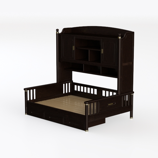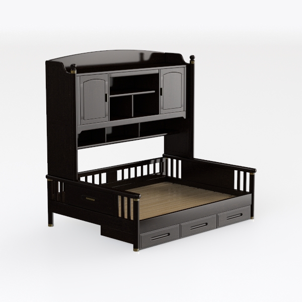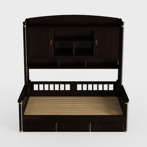 This elegant piece of bedroom furniture blends timeless design with modern practicality, drawing inspiration from the harmonious balance of traditional storage solutions and contemporary space efficiency. Its structure features a symmetrical layout: a lower bed frame with a solid wooden slatted base, and an upper cabinetry section that seamlessly integrates with the bed, creating a cohesive unit that maximizes functionality without sacrificing style.