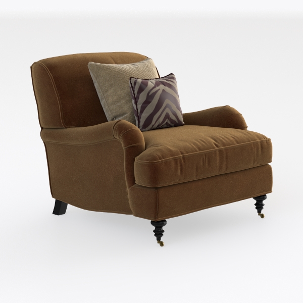 This armchair is an ideal focal point for any contemporary living space, particularly when paired with a sleek coffee table and accentuated by decorative metallic accents. Its unique, elegantly curved arms and beautifully turned wooden legs add an air of sophistication, making it a perfect complement to mid-century modern or eclectic interiors.