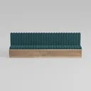 Drawing inspiration from mid-century modern design and organic minimalism, this bench marries geometric precision with natural warmth. The deep teal upholstery, with its vertical channel tufting, feels sumptuously soft to the touch—like a plush velvet that catches light gently, while the subtle texture adds depth to the clean lines. The warm oak base, with its visible wood grain, grounds the piece, creating a striking contrast between the rich green hue and the natural material, balancing modern simplicity with a touch of vintage charm.
