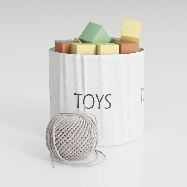 Perfect for a child’s bedroom or playroom, this piece pairs beautifully with minimalist Scandinavian decor, where light wood furniture, soft textiles, and understated color palettes reign. It also complements warm, family-oriented spaces, enhancing the cozy, lived-in vibe of a home with young children. Functionality is key here: the generous capacity of the container easily accommodates a variety of small toys, while its sturdy, washable material ensures durability through daily use, keeping the play area tidy without sacrificing style. Together, the container, blocks, and rope create a scene that balances order and joy, making toy storage both a practical solution and a delightful part of the room’s design.