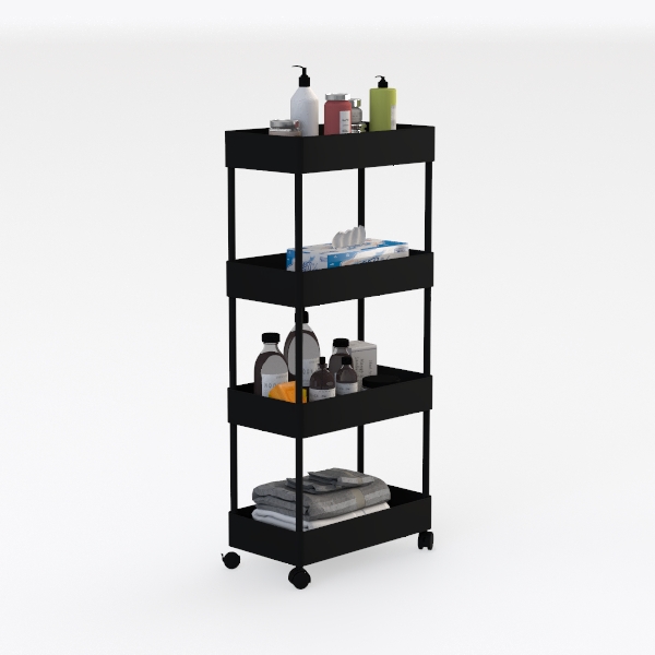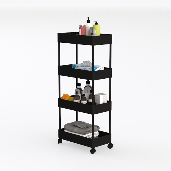 With four tiered shelves, each offering distinct storage zones, it neatly organizes toiletries, bath essentials, and small appliances. The frame is sturdy enough to hold bottles and linens, while the lightweight structure makes rearranging simple. Whether in a studio apartment or a cozy guest bathroom, this solution marries practicality with style, proving that minimalism can be both functional and visually striking.