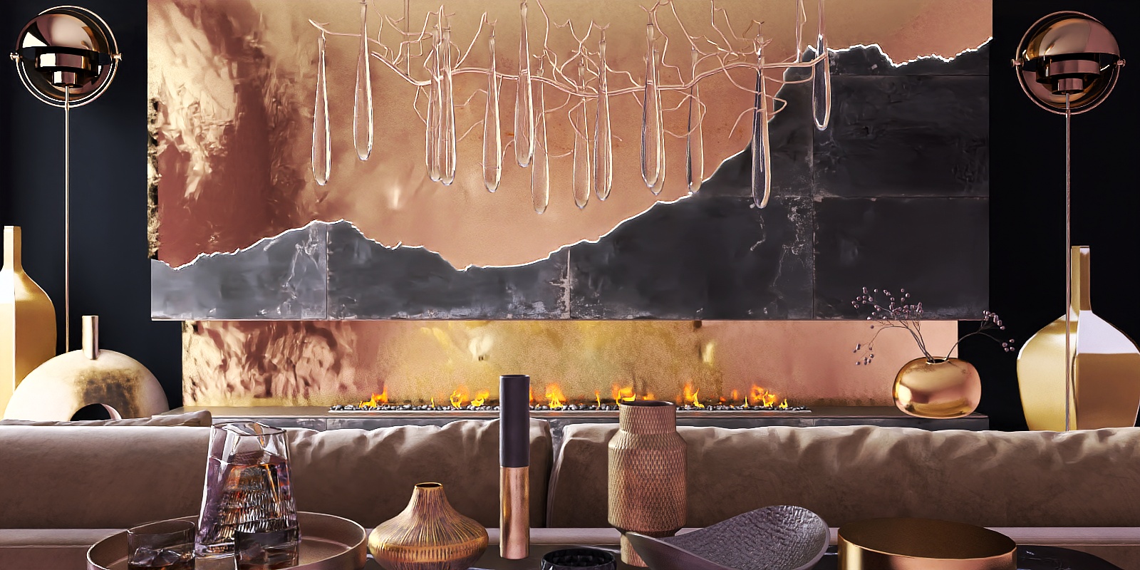 The legs, in a warm rose-gold finish, balance structural strength with delicate detail: three sleek, parallel metal strips on one side and a solid cylindrical support on the other, their metallic sheen catching ambient light to infuse the design with subtle warmth. Visually, the contrast between the dark marble and glowing metal creates a striking focal point, making it a versatile addition to contemporary spaces.