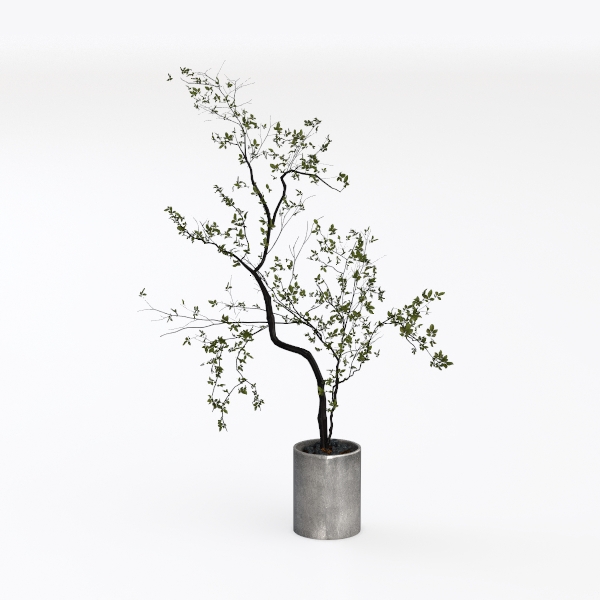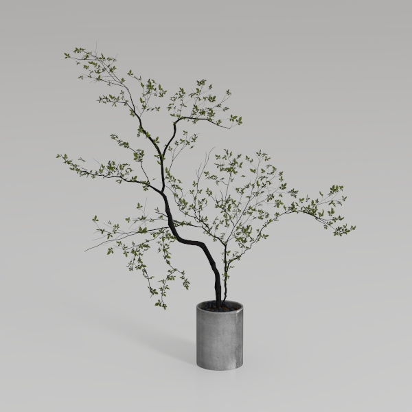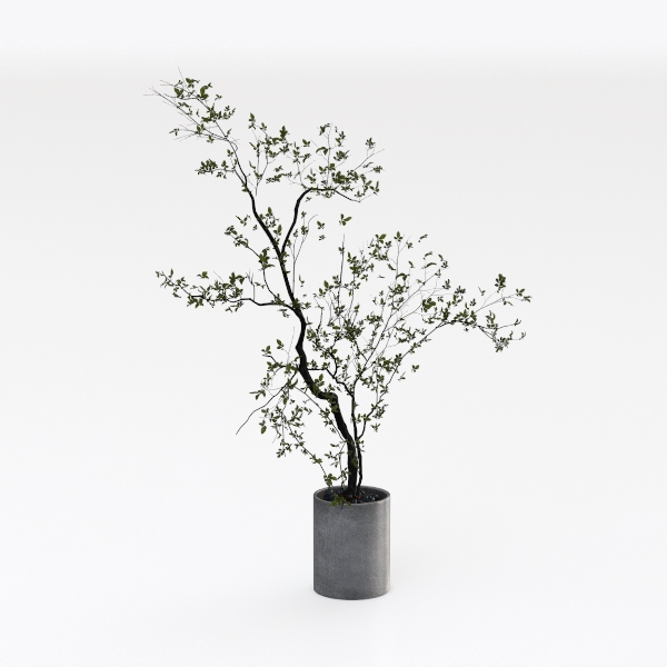 Designed to evoke the quiet charm of a forest nook, this potted plant merges natural softness with modern simplicity. Thin, dark branches with tender green leaves form a graceful, airy silhouette, while the matte concrete pot adds a cool, grounded contrast. Ideal for a minimalist living room or serene study, it pairs beautifully with light wood furniture and neutral walls. Its lightweight build and air-purifying foliage bring calm and life, enhancing any space’s warmth and visual depth.