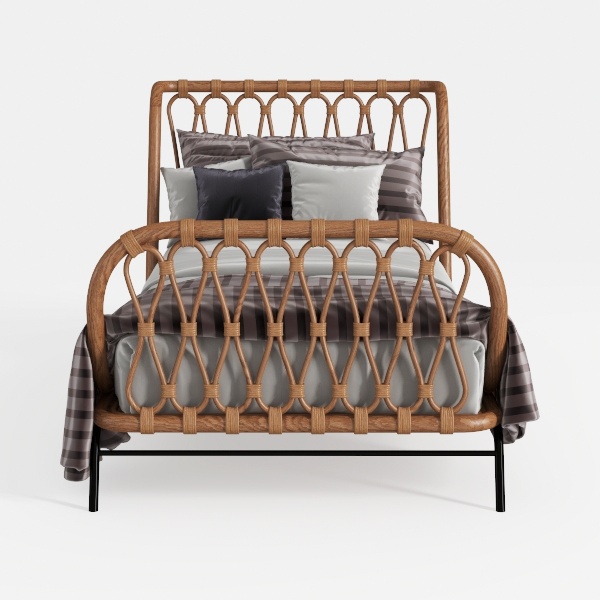Inspired by natural vine structures, this bed features warm, natural texture with intricate woven patterns, boasting soft earthy charm. Perfect for cozy, minimalist or bohemian bedrooms, pairing with linen bedding and wooden nightstands to enhance its organic vibe. Sturdy frame and curved headboard offer excellent support for daily comfort, blending style and comfort seamlessly.