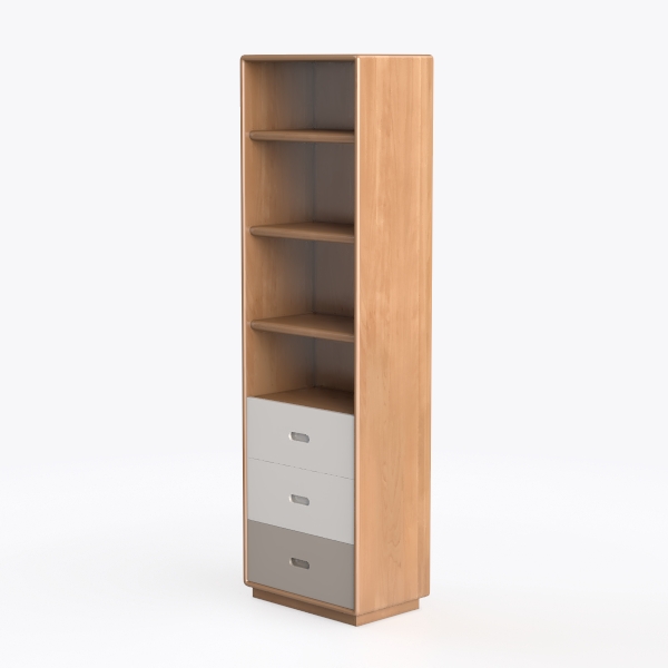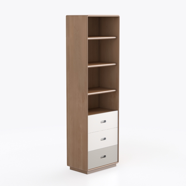 Inspired by natural wood grain and clean lines, this bookshelf blends warm oak finish with smooth surfaces and crisp white drawers. Perfect for modern minimalist or Scandinavian living rooms, it pairs well with neutral sofas and potted greenery, offering three roomy drawers for hidden storage and open shelves above to display books or decor, balancing functionality and style.